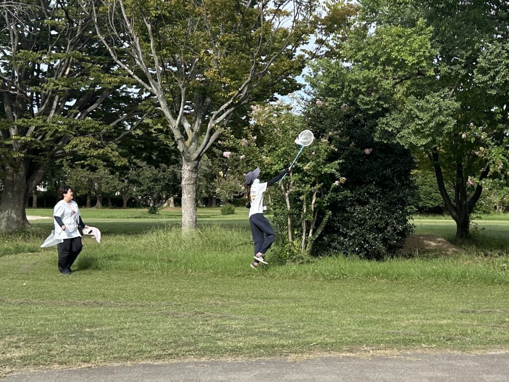 むしとりをしている時の先生方、とっても楽しそう♡あっという間に時間が過ぎましたね。トンボやチョウを全力ダッシュで追いかける姿、ステキでした✨