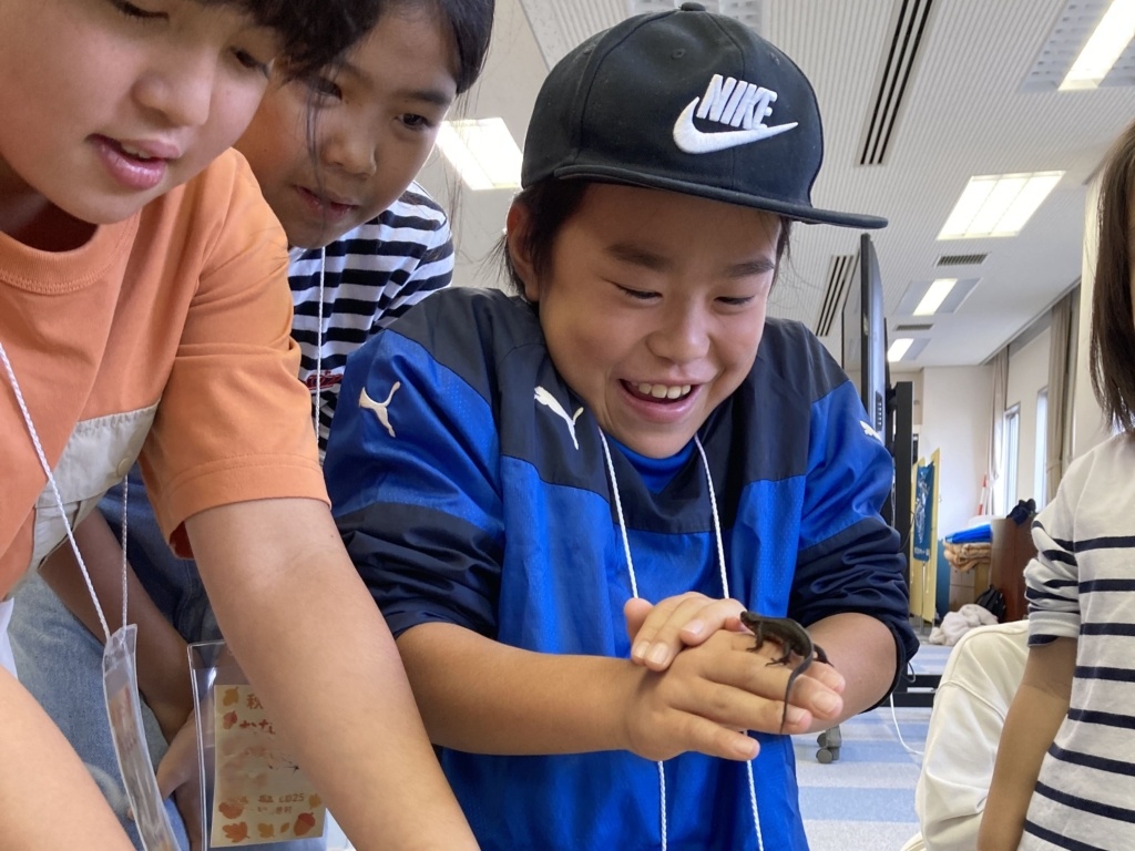 いきものタッチでは、カマキリや、アカハライモリが大人気♡「かわいい~」と、喜んで”いきものタッチ”してくれました。