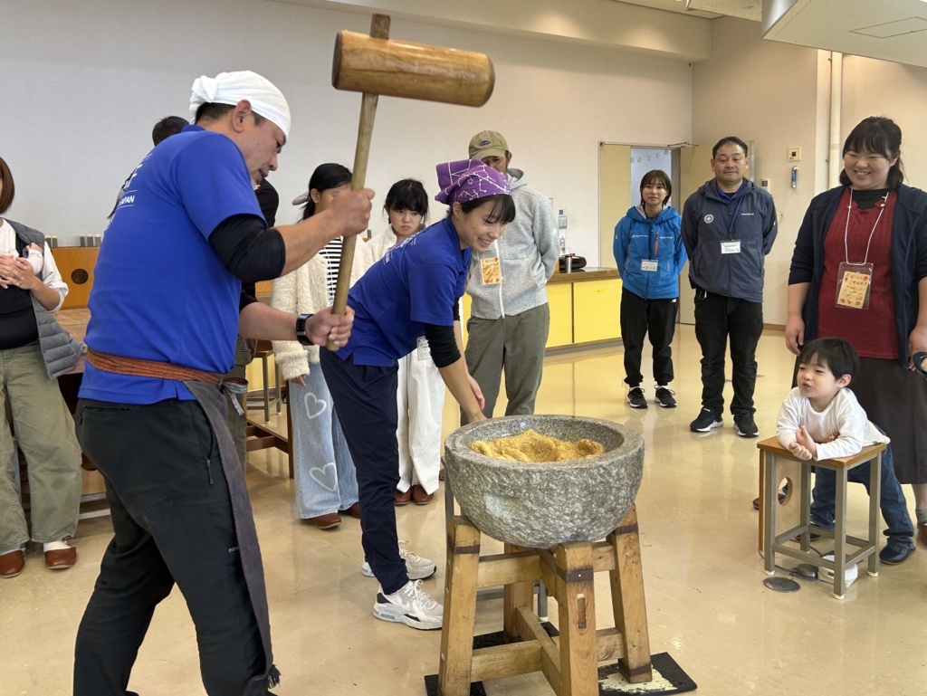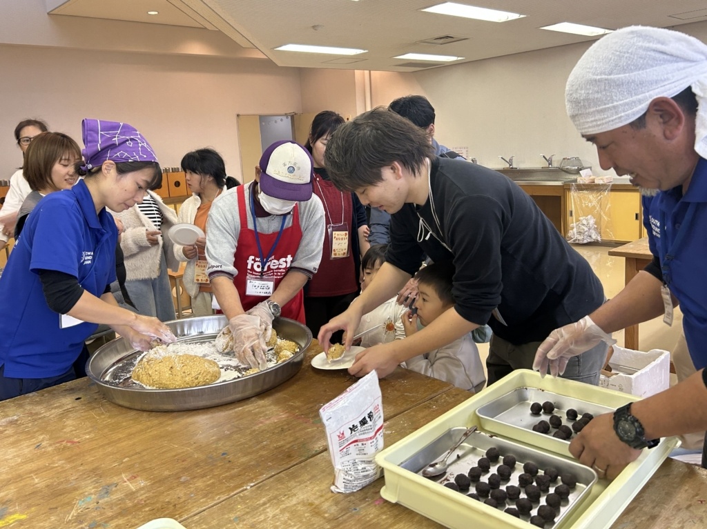 地元の方による、とちもち作りのお話を聞き、とちもちづくりスタート!!出来たてのとちもちをみんなで頂きました♡