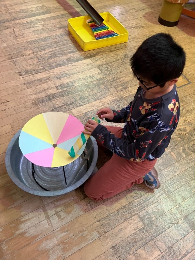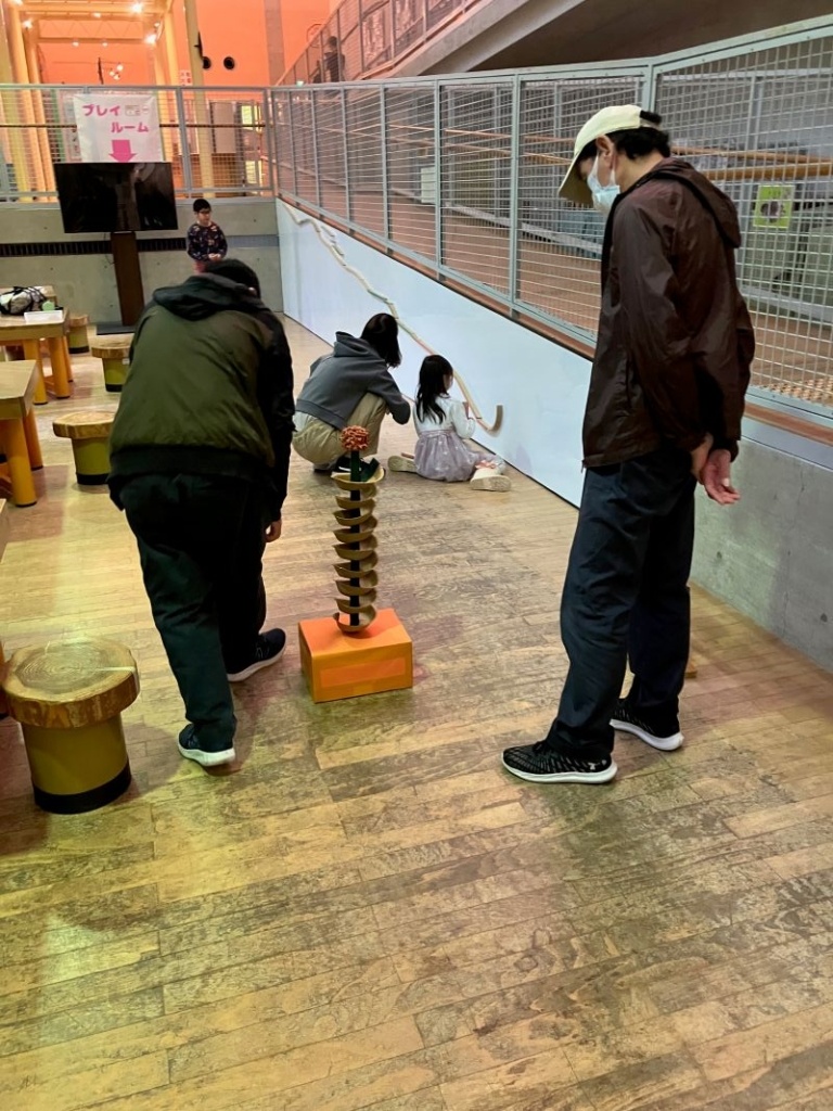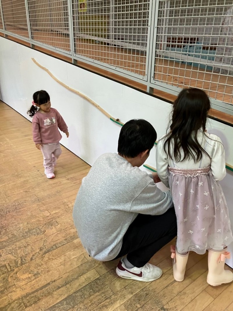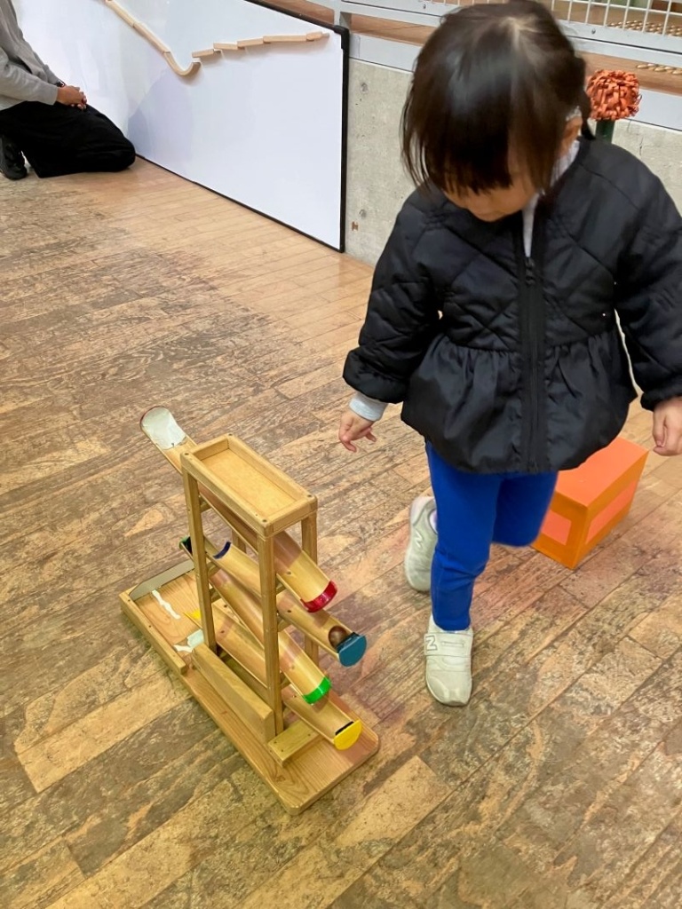 その後、どんぐり転がしのおもちゃで遊んだり、