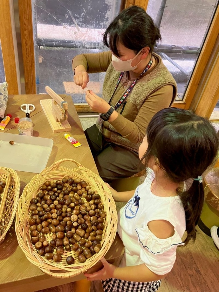 室内での「どんぐりたいけん」になりました。①11:00~②13:30~③15:00~(各回60分)の3回実施しました。